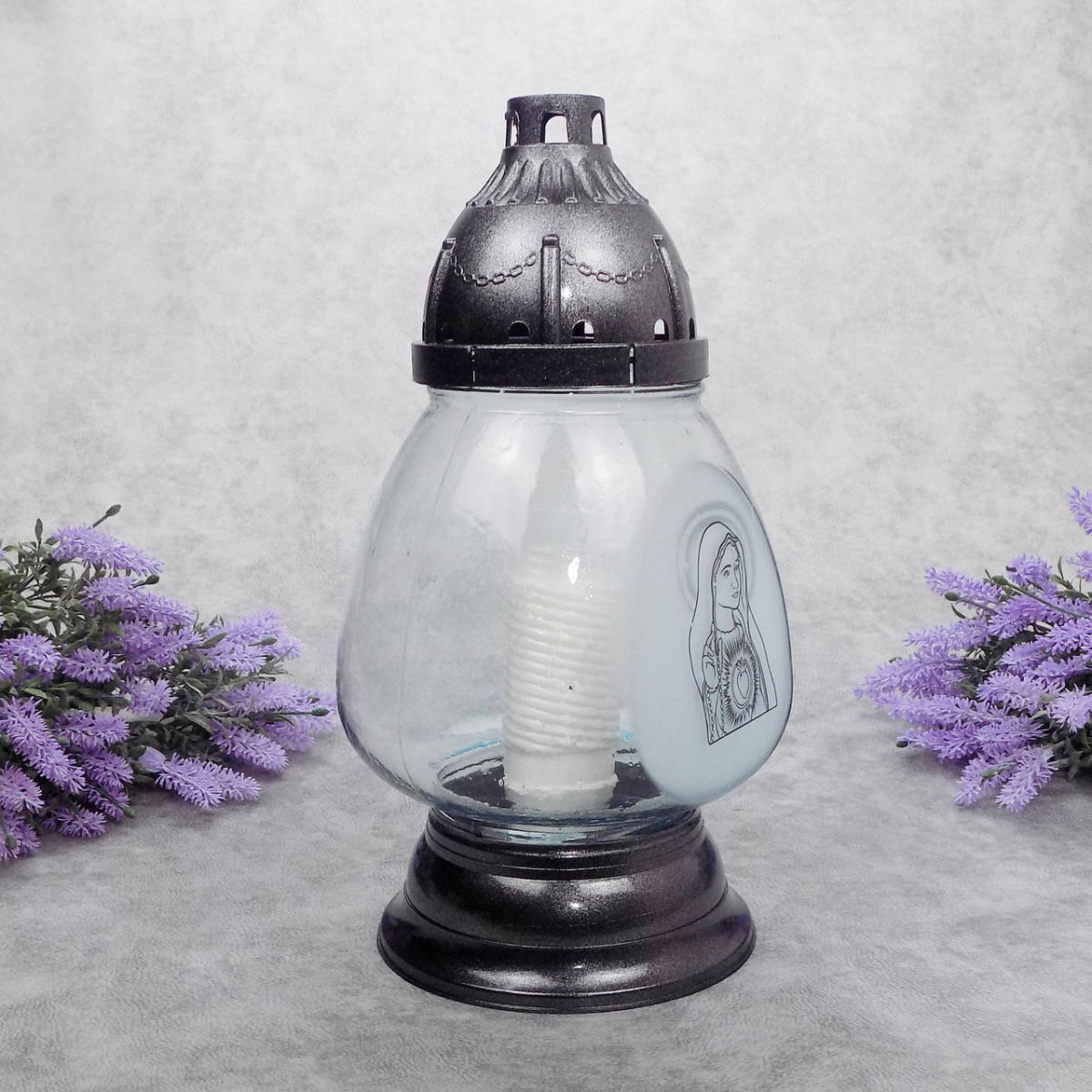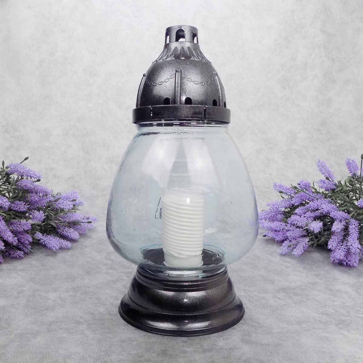 Лампадка - стриманий і символічний виріб, який запалюють на могилах померлих у пам’ять про померлих під час поминальних днів або особливих дат, що символізує незгасаючу пам’ять і молитовну підтримку душ. У християнстві лампадка є частиною як православних, так і католицьких традицій. Це простий, але виразний символ вічної шани до померлих, що втілює духовність і спокій. Матеріал: скло/пластик Час горіння свічки: ≈ 45год Пакування: 4 шт Висота: 34 см Ширина: 19 см Глибина: 19 см Вага: 0,8 кг Призначено для використання: цвинтар, пам“ятні заходи та меморіали тільки зовнішнє використання простота у використанні, можливість зміни свічки без зміни лампадки може використовуватися як зі свічками, так і з лампами LED стійка основа забезпечує розміщення на різних поверхнях і мінімізує можливість перекидання