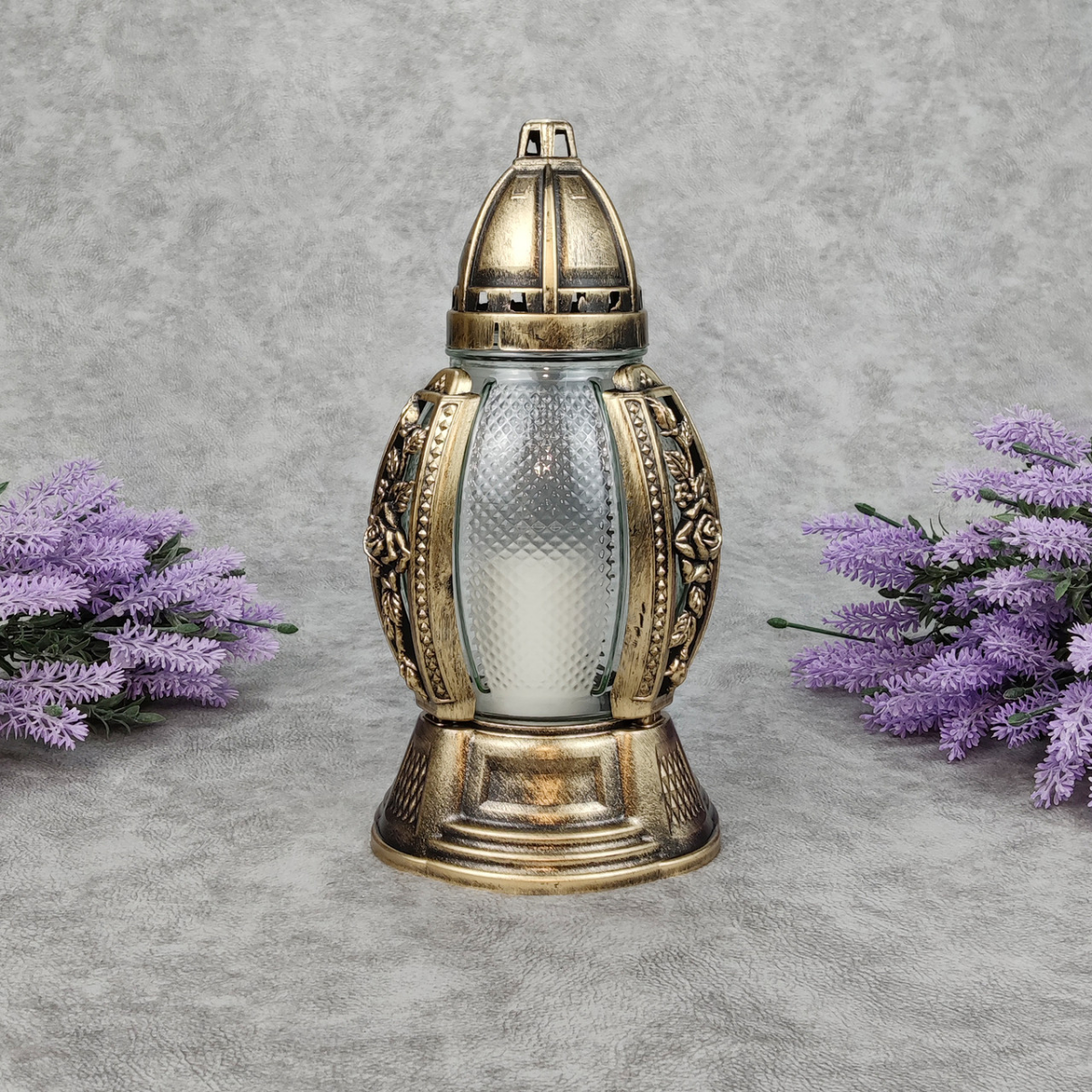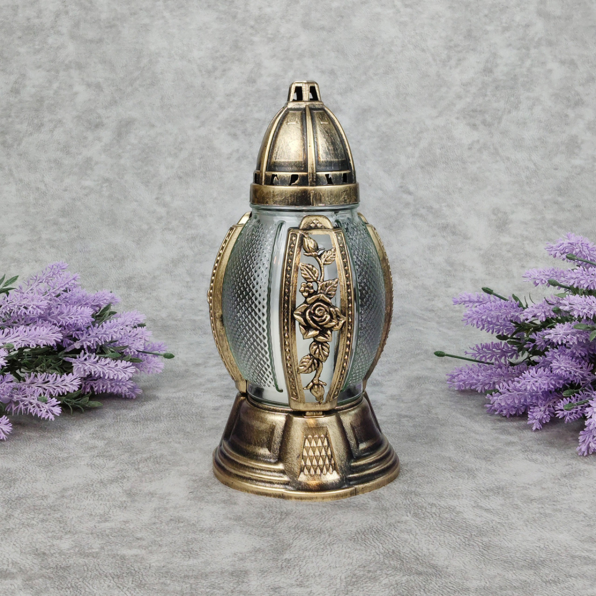 Лампадка скляна середня в ажурному оздобленні бронзова 456P