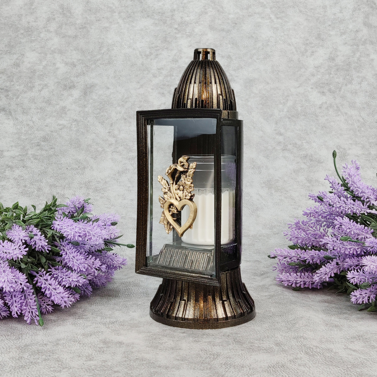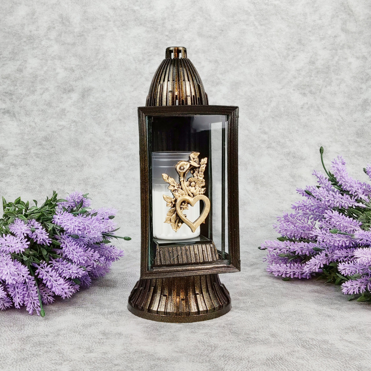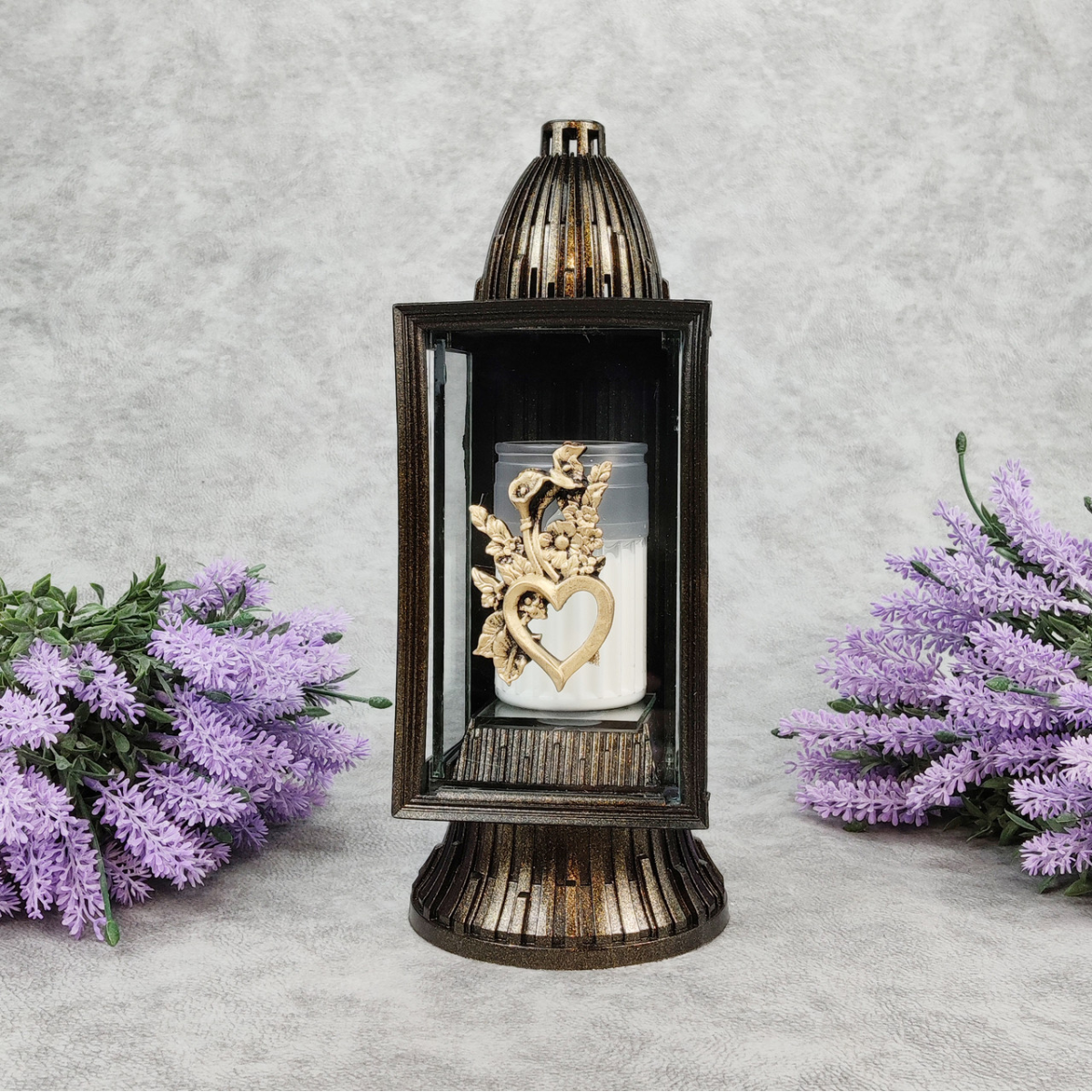 Лампадка середня бронзова аплікація із серцем GlassArt Km 14год