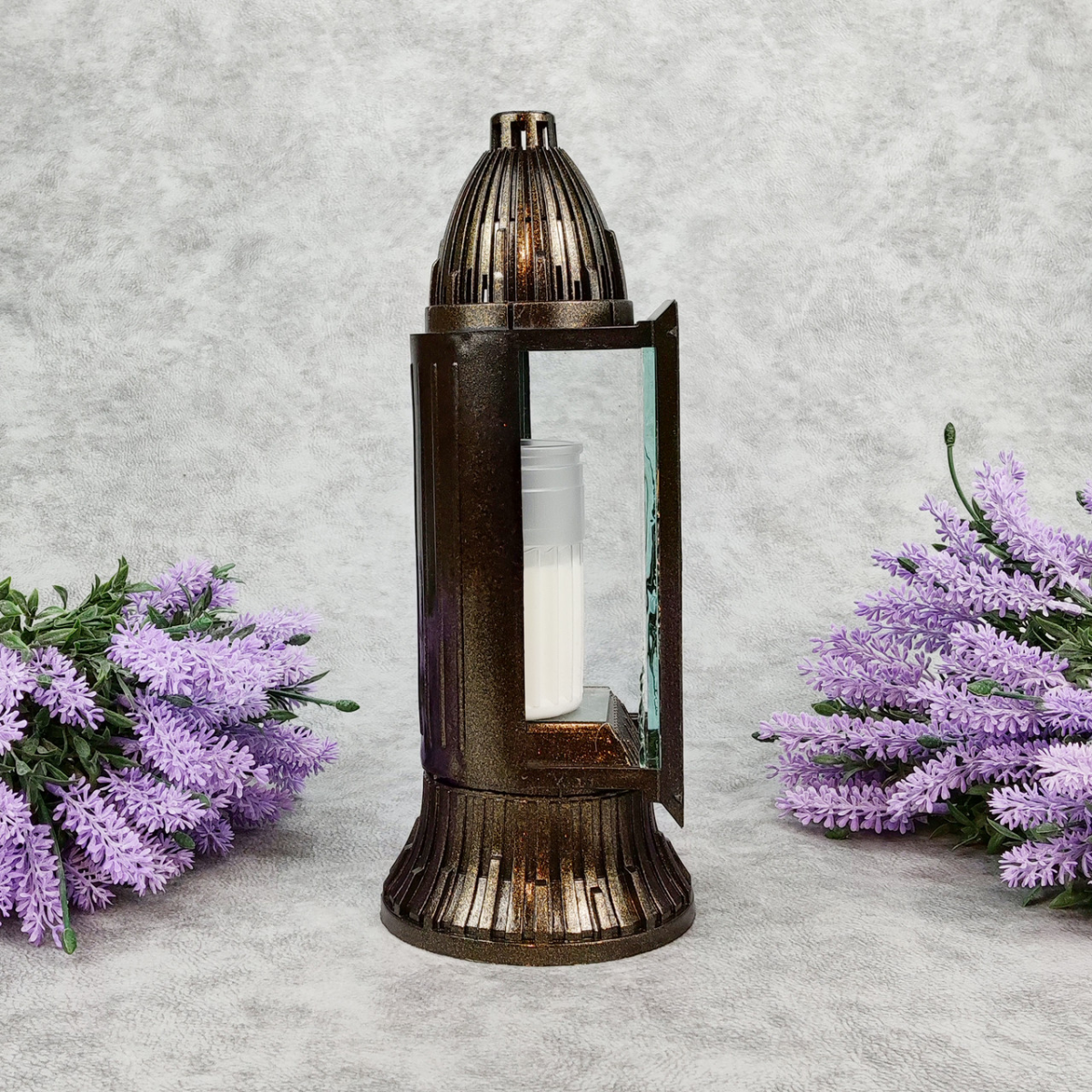 Лампадка - стриманий і символічний виріб, який запалюють на могилах померлих у пам’ять про померлих під час поминальних днів або особливих дат, що символізує незгасаючу пам’ять і молитовну підтримку душ. У християнстві лампадка є частиною як православних, так і католицьких традицій. Це простий, але виразний символ вічної шани до померлих, що втілює духовність і спокій. Матеріал: скло/пластик Час горіння свічки: ≈ 14 год Пакування: 8 шт Висота: 28 см Ширина: 11 см Глибина: 11 см Вага: 0,5 кг Призначено для використання: цвинтар, пам“ятні заходи та меморіали тільки зовнішнє використання простота у використанні, можливість зміни свічки без зміни лампадки може використовуватися як зі свічками, так і з лампами LED стійка основа забезпечує розміщення на різних поверхнях і мінімізує можливість перекидання