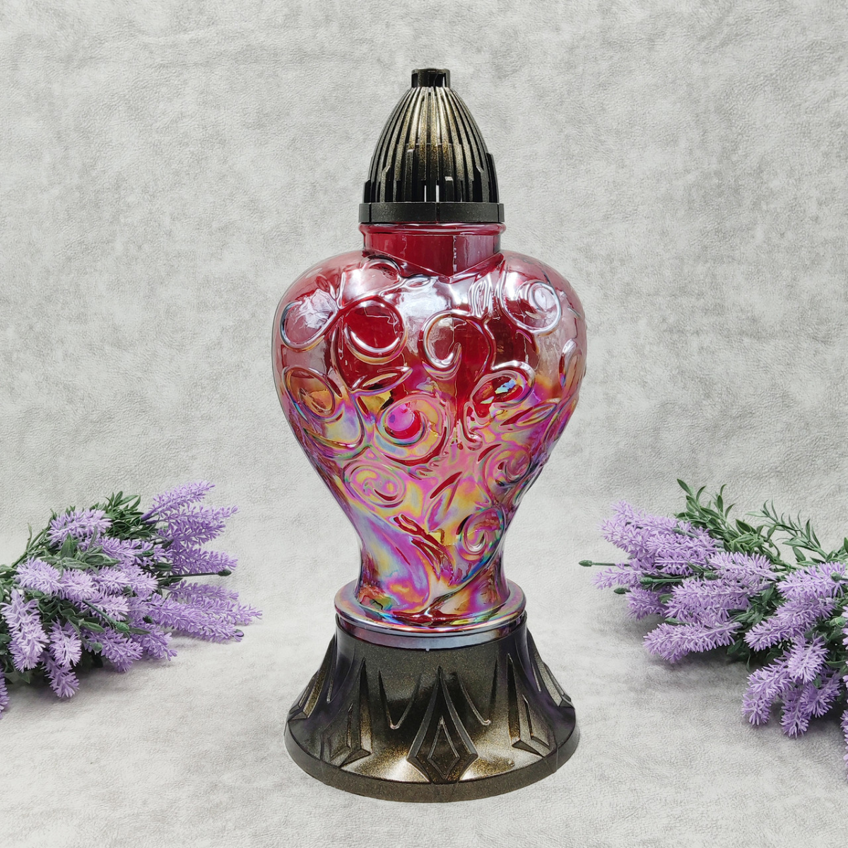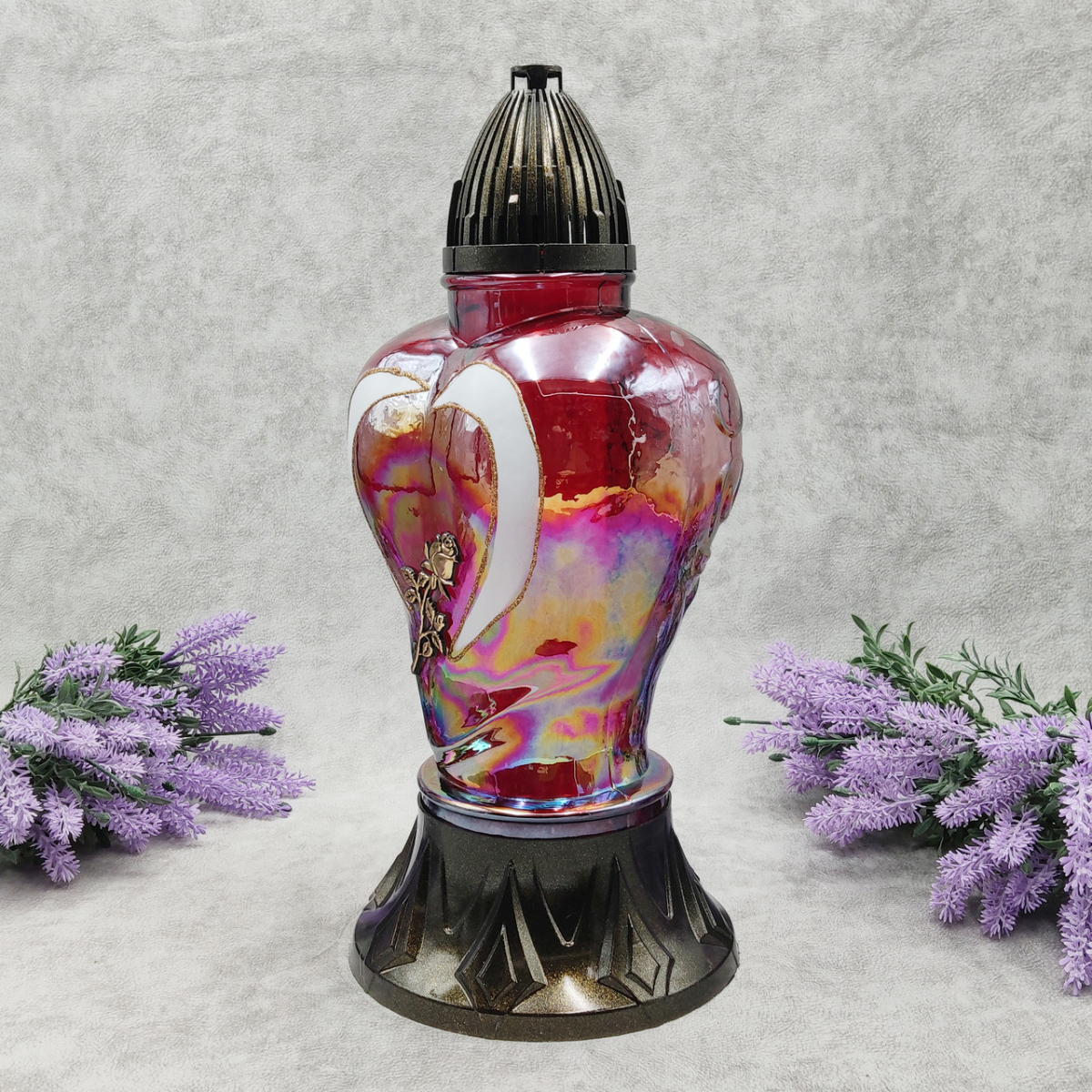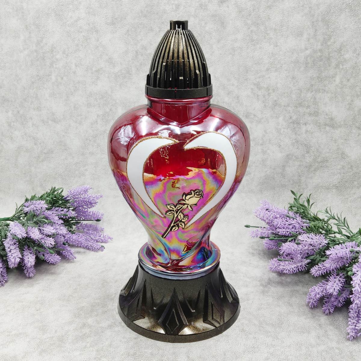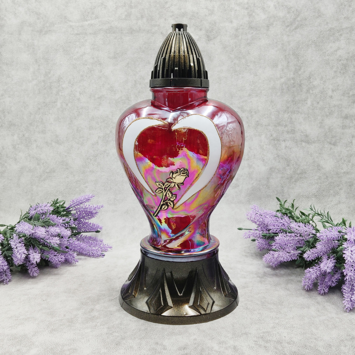 Лампадка скляна велика серце з трояндою Lampion Серце Живиця червона 45 год