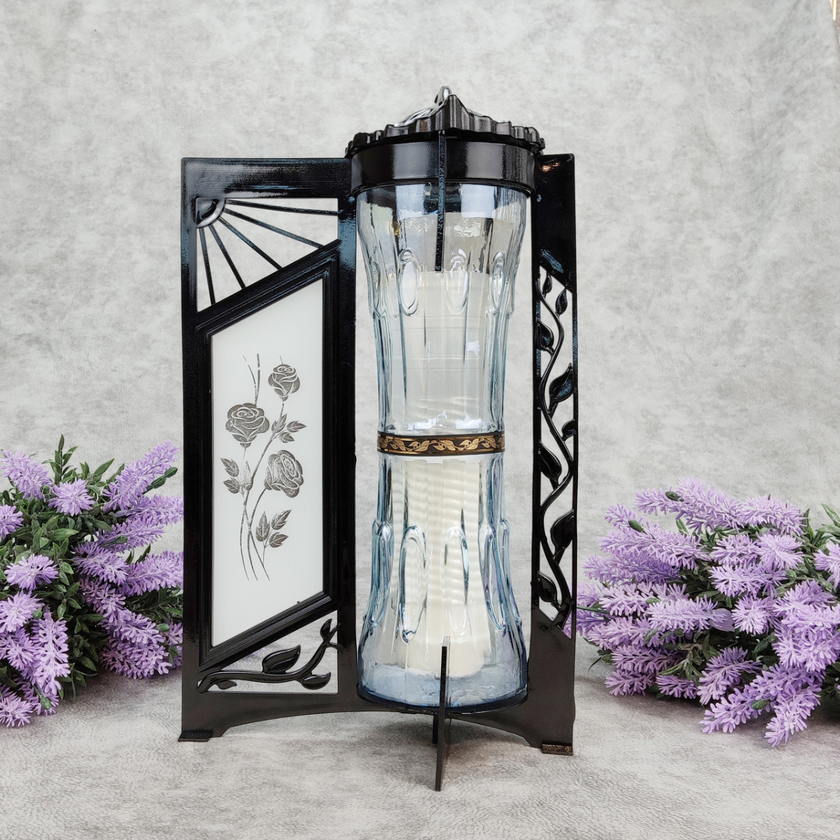 Лампадка - це стриманий і символічний виріб, який запалюють на могилах померлих у пам’ять про померлих під час поминальних днів або особливих дат, що символізує незгасаючу пам’ять і молитовну підтримку душ. У християнстві лампадка є частиною як православних, так і католицьких традицій. Це простий, але виразний символ вічної шани до померлих, що втілює духовність і спокій. Матеріал: скло/пластик Час горіння свічки: 33 год Пакування: 9 шт Висота: 33 см Ширина: 18 см Глибина: 13 см Вага: 0,75 кг Призначено для використання: цвинтар, пам“ятні заходи та меморіали тільки зовнішнє використання простота у використанні, можливість зміни свічки без зміни лампадки може використовуватися як зі свічками, так і з лампами LED стійка основа забезпечує розміщення на різних поверхнях і мінімізує можливість перекидання не містить токсичних речовин виготовлена з високоякісних матеріалів