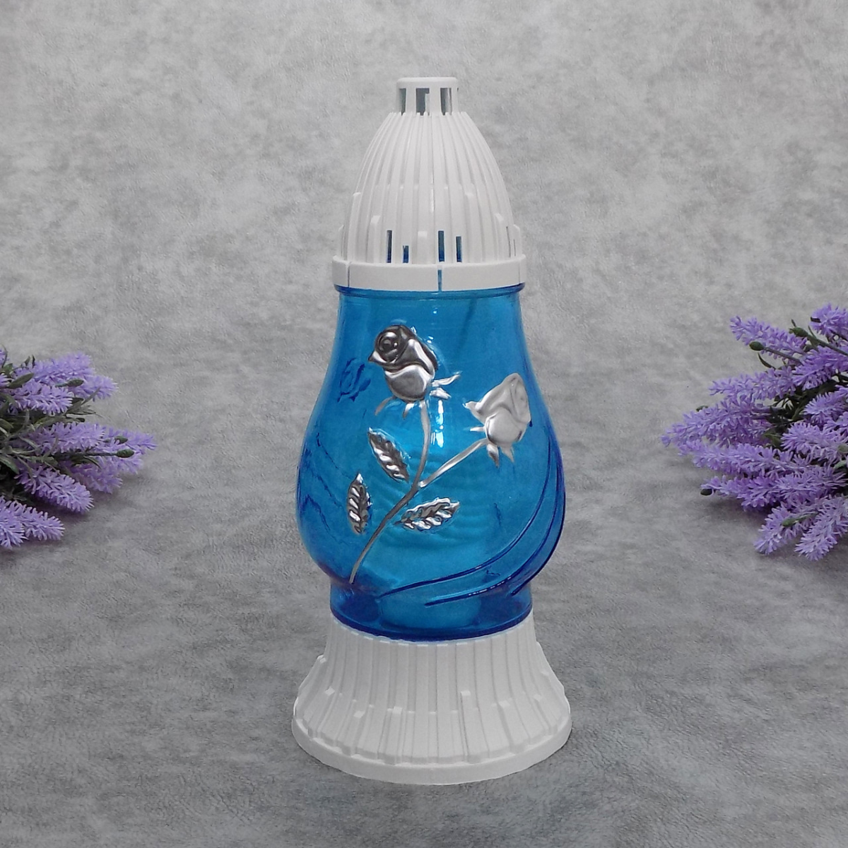 • Лампадка скляна з квітковим орнаментом LP200 блакитна