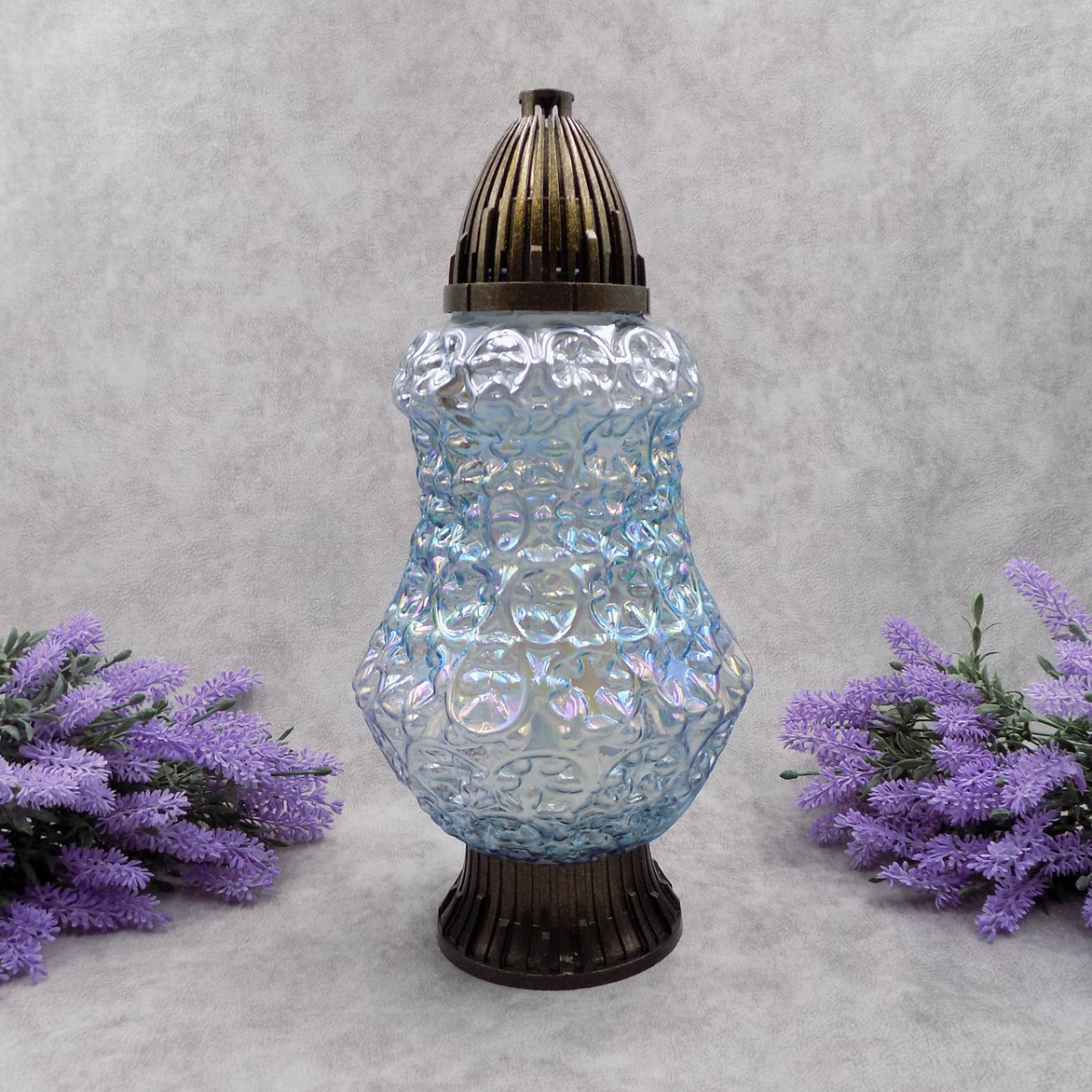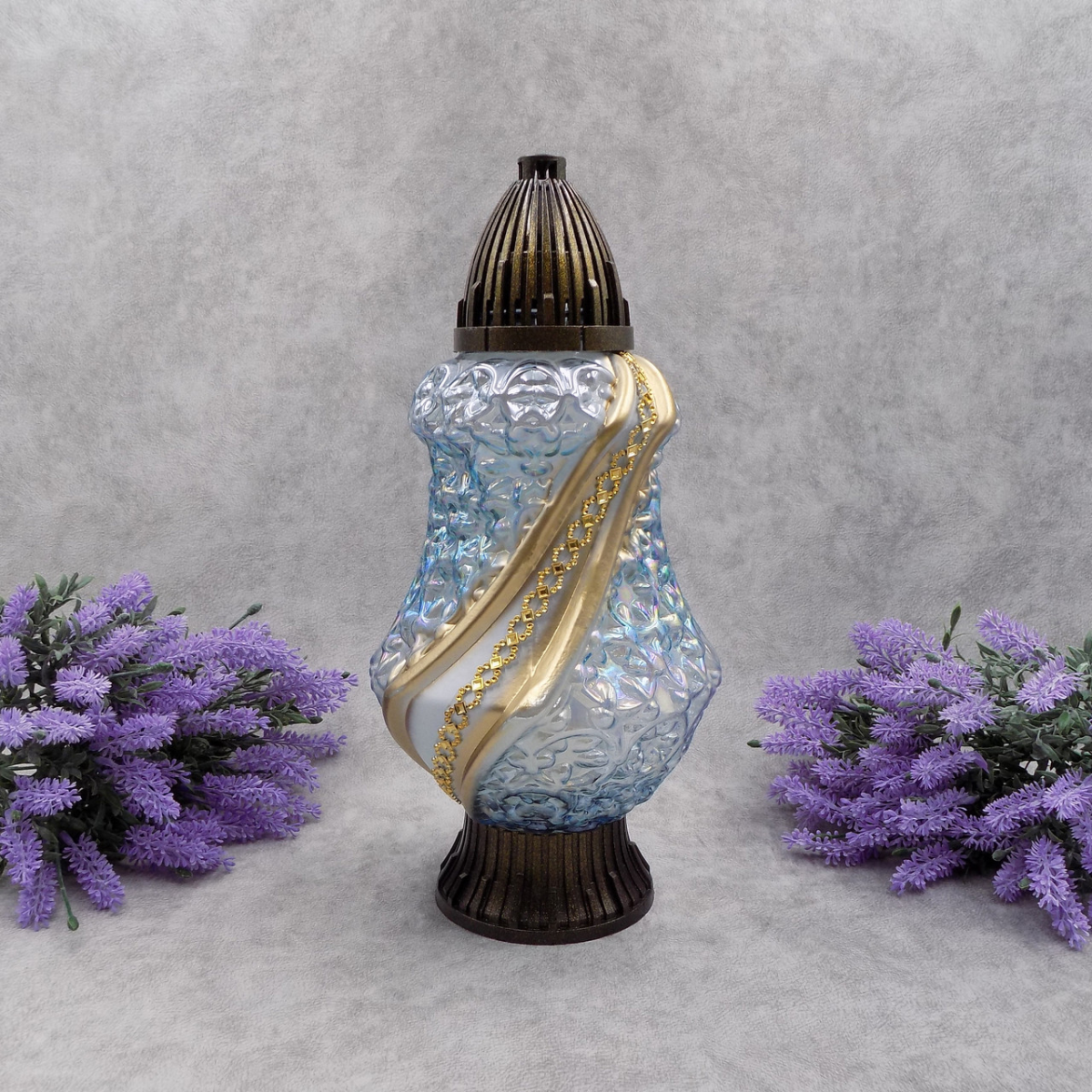 Лампадка зі свічкою-запаскою - виготовлена з високоякісних матеріалів, не містить токсичних речовин, не коптить і абсолютно безпечна для здоров“я. Матеріал: скло/пластик Час горіння свічки: ≈ 45 год Пакування: 4 шт Висота: 36 см Ширина: 17 см Глибина: 17 см Вага: 1,1 кг Призначено для використання: цвинтар, пам“ятні заходи та меморіали тільки зовнішнє використання простота у використанні, можливість зміни свічки без зміни лампадки може використовуватися як зі свічками, так і з лампами LED стійка основа забезпечує розміщення на різних поверхнях і мінімізує можливість перекидання