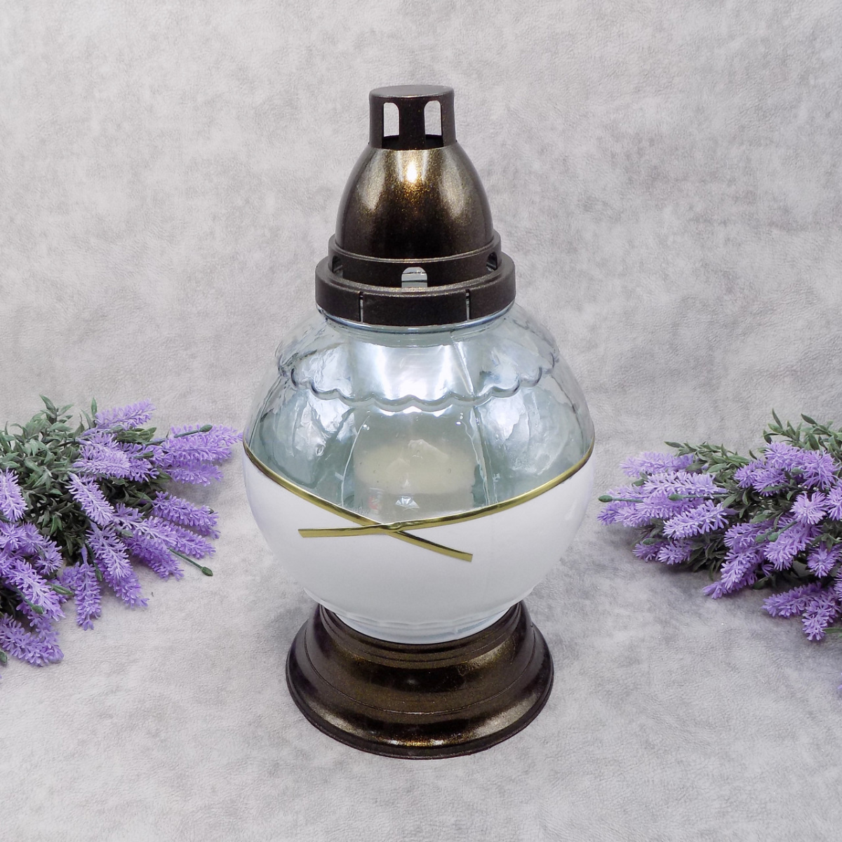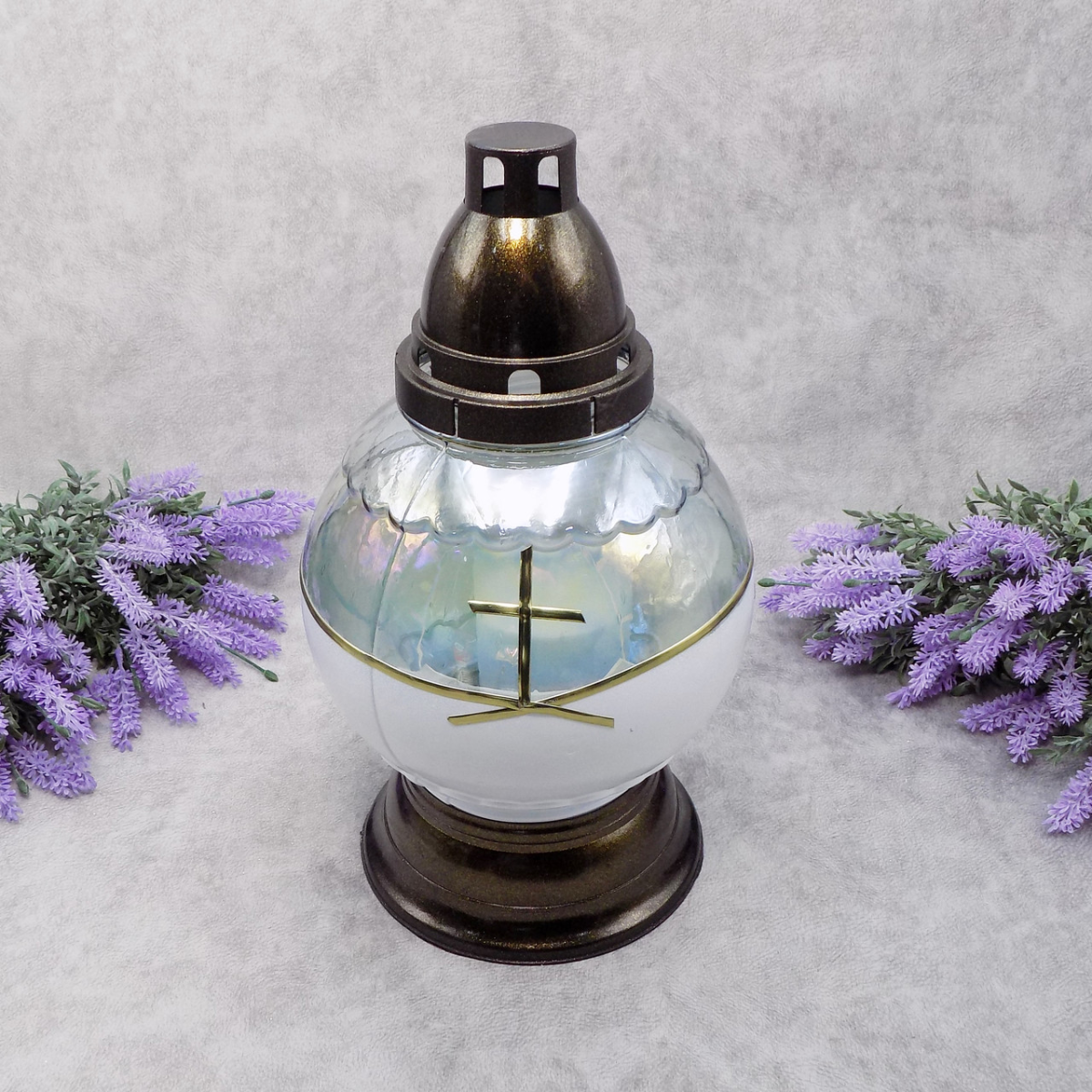 Лампадка - стриманий і символічний виріб, який запалюють на могилах померлих у пам’ять про померлих під час поминальних днів або особливих дат, що символізує незгасаючу пам’ять і молитовну підтримку душ. У християнстві лампадка є частиною як православних, так і католицьких традицій. Це простий, але виразний символ вічної шани до померлих, що втілює духовність і спокій. Матеріал: скло/пластик Час горіння свічки: ≈ 45 год Пакування: 2 шт Висота: 34 см Ширина: 18 см Глибина: 18 см Вага: 1,2 кг Призначено для використання: цвинтар, пам“ятні заходи та меморіали тільки зовнішнє використання простота у використанні, можливість зміни свічки без зміни лампадки може використовуватися як зі свічками, так і з лампами LED стійка основа забезпечує розміщення на різних поверхнях і мінімізує можливість перекидання