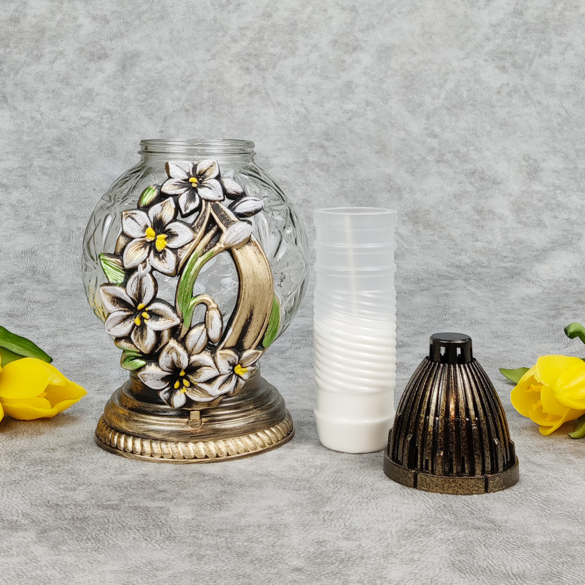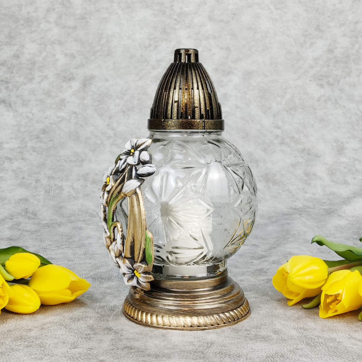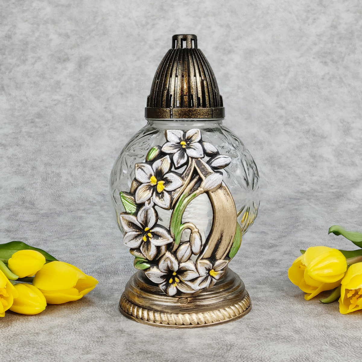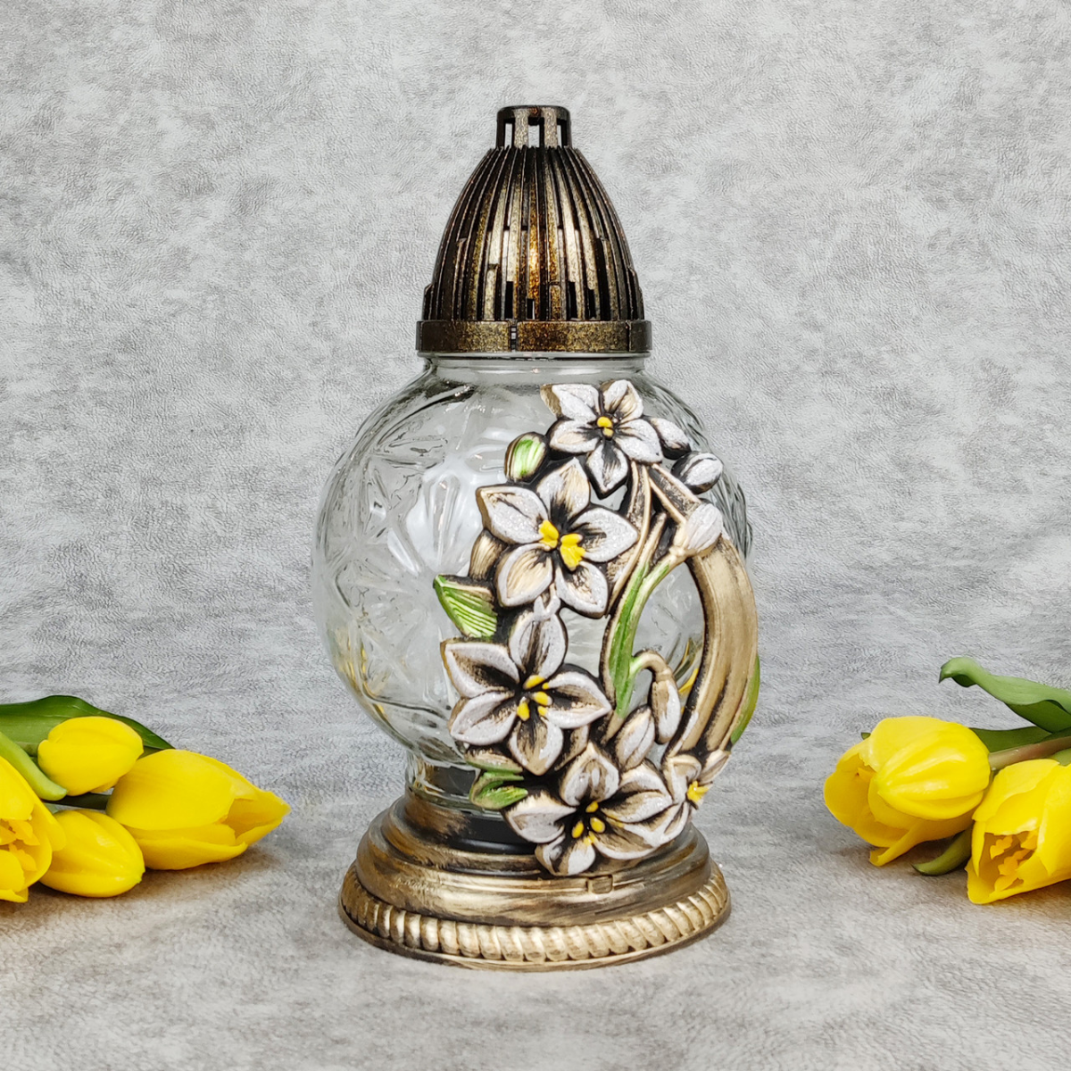 Лампадка скляна середня куля з аплікацією проліски 20год