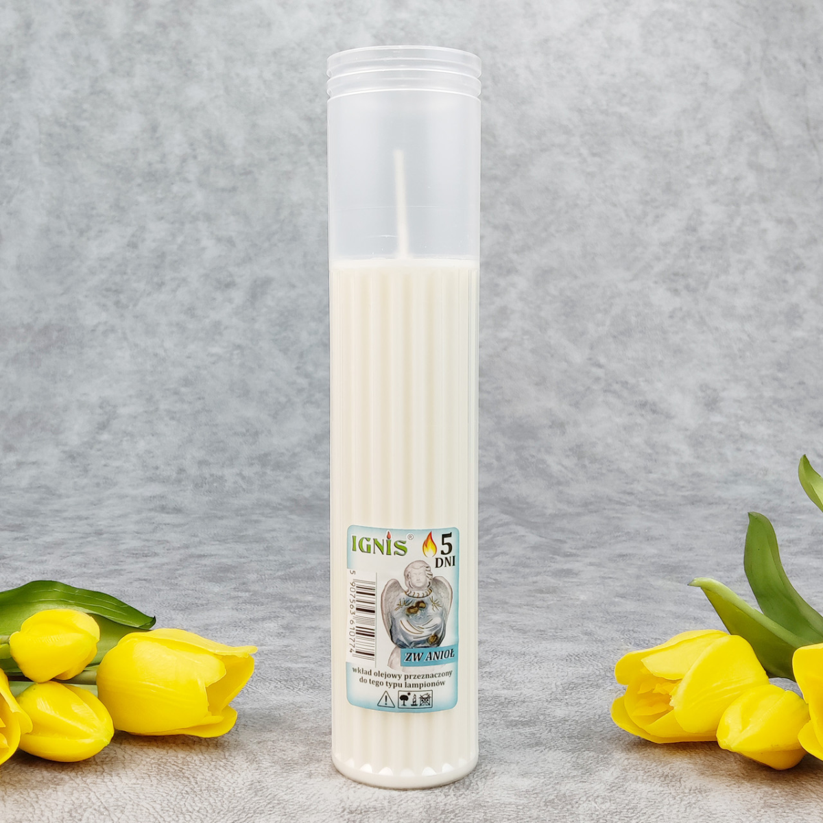 Свічка-запаска, виготовлена з високоякісних матеріалів, не містить токсичних речовин, не коптить і є абсолютно безпечною для здоров“я. Парафіновий вкладиш у пластиковому корпусі. Можна використовувати самостійно і як змінну вкладку