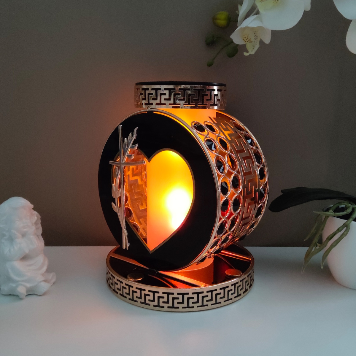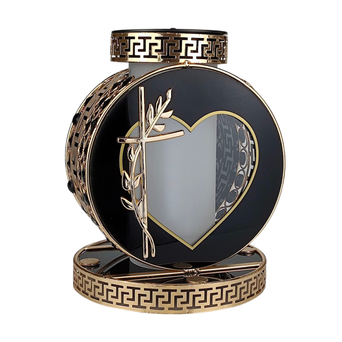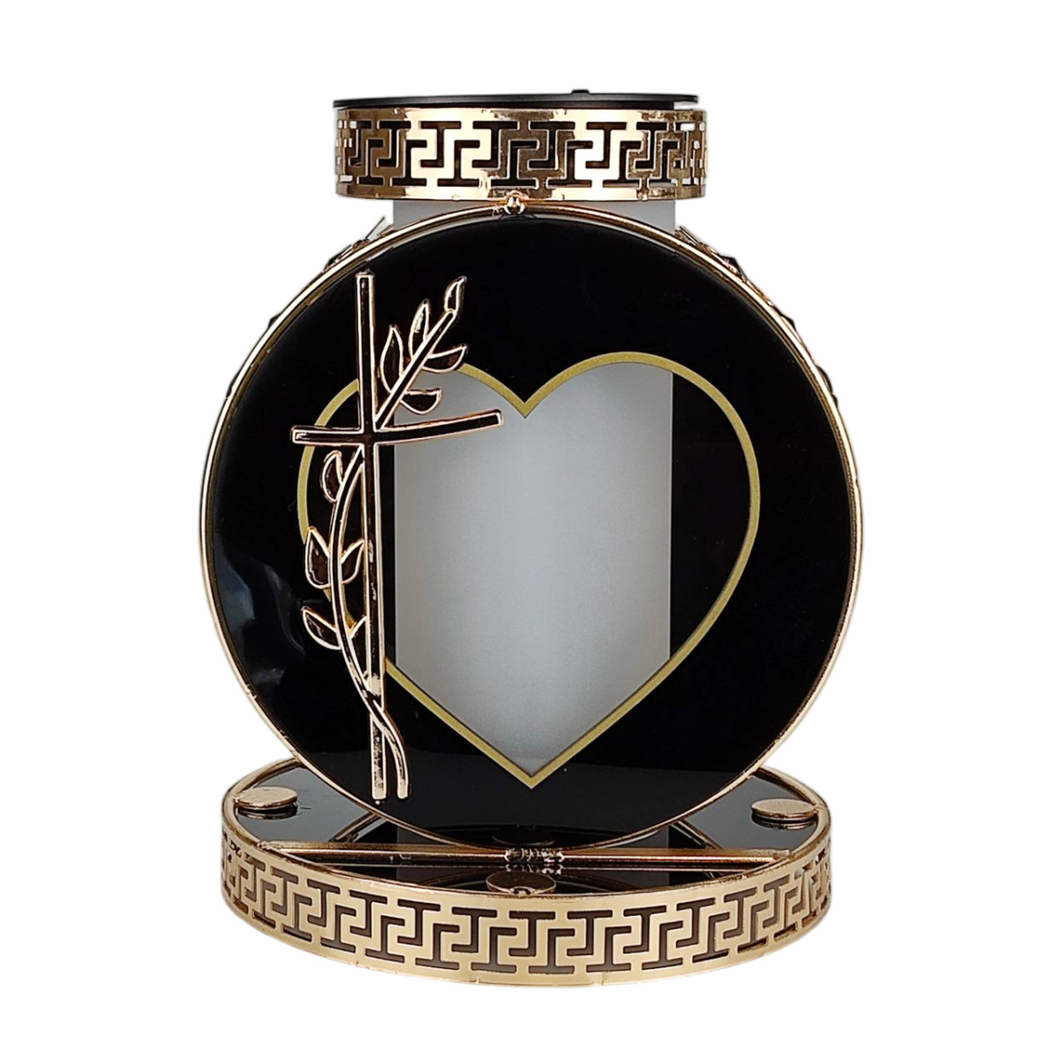 Лампадка велика ажурна золотиста на сонячній батареї Witraz Serce Premium Black