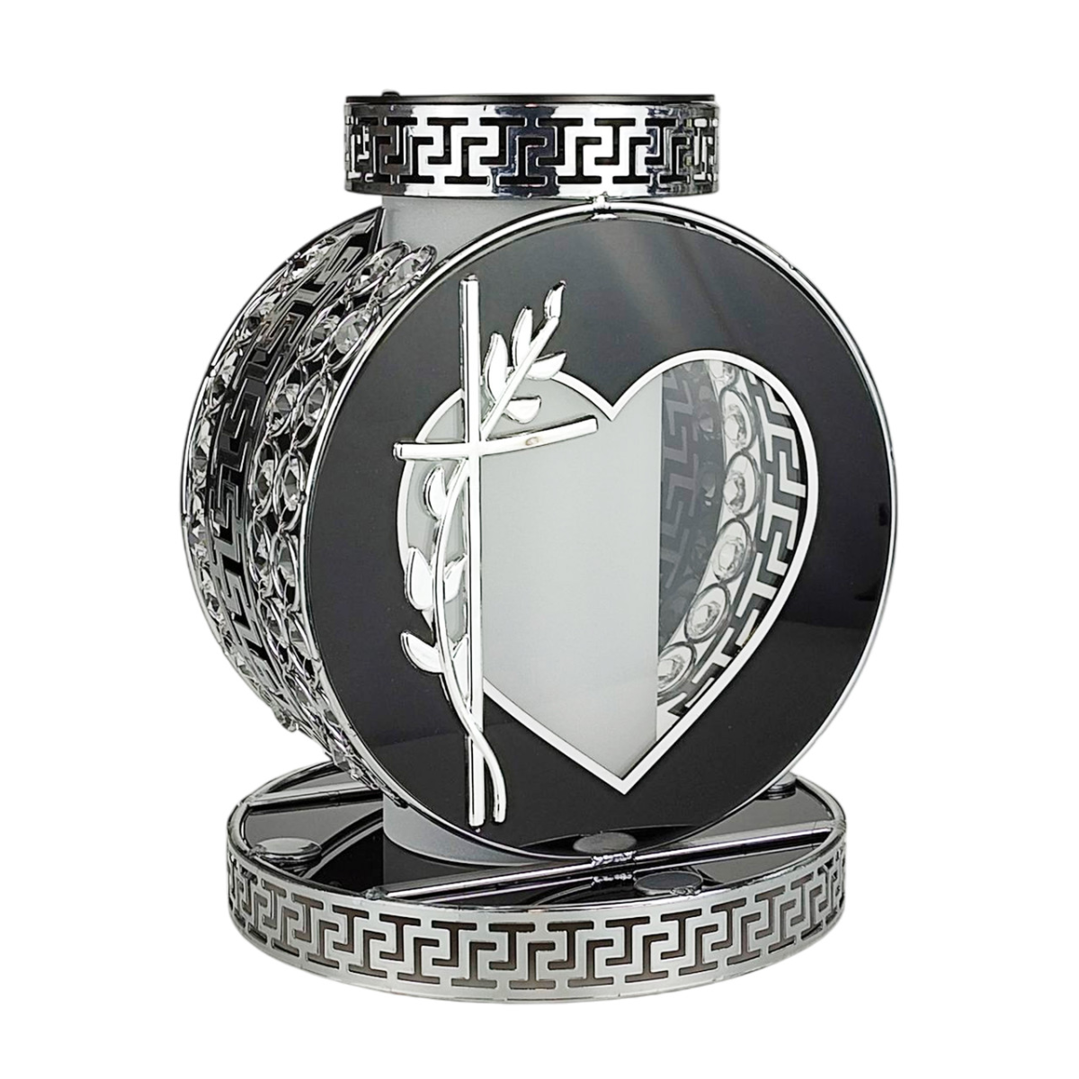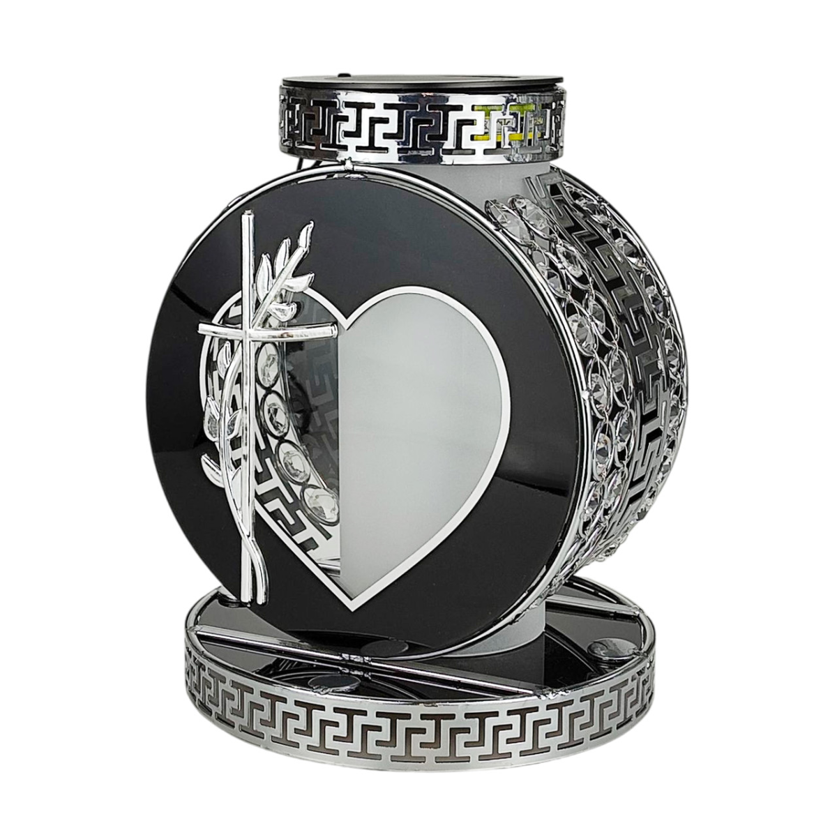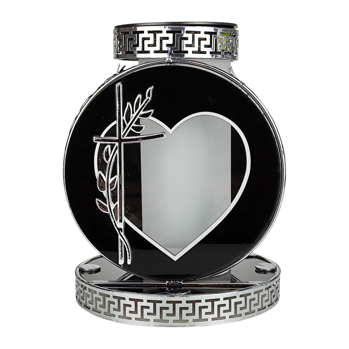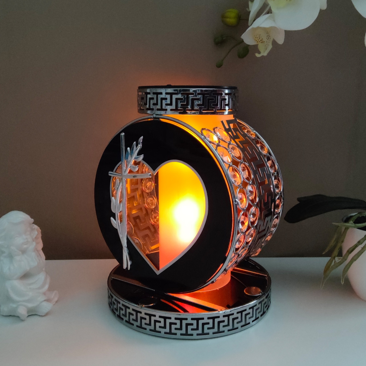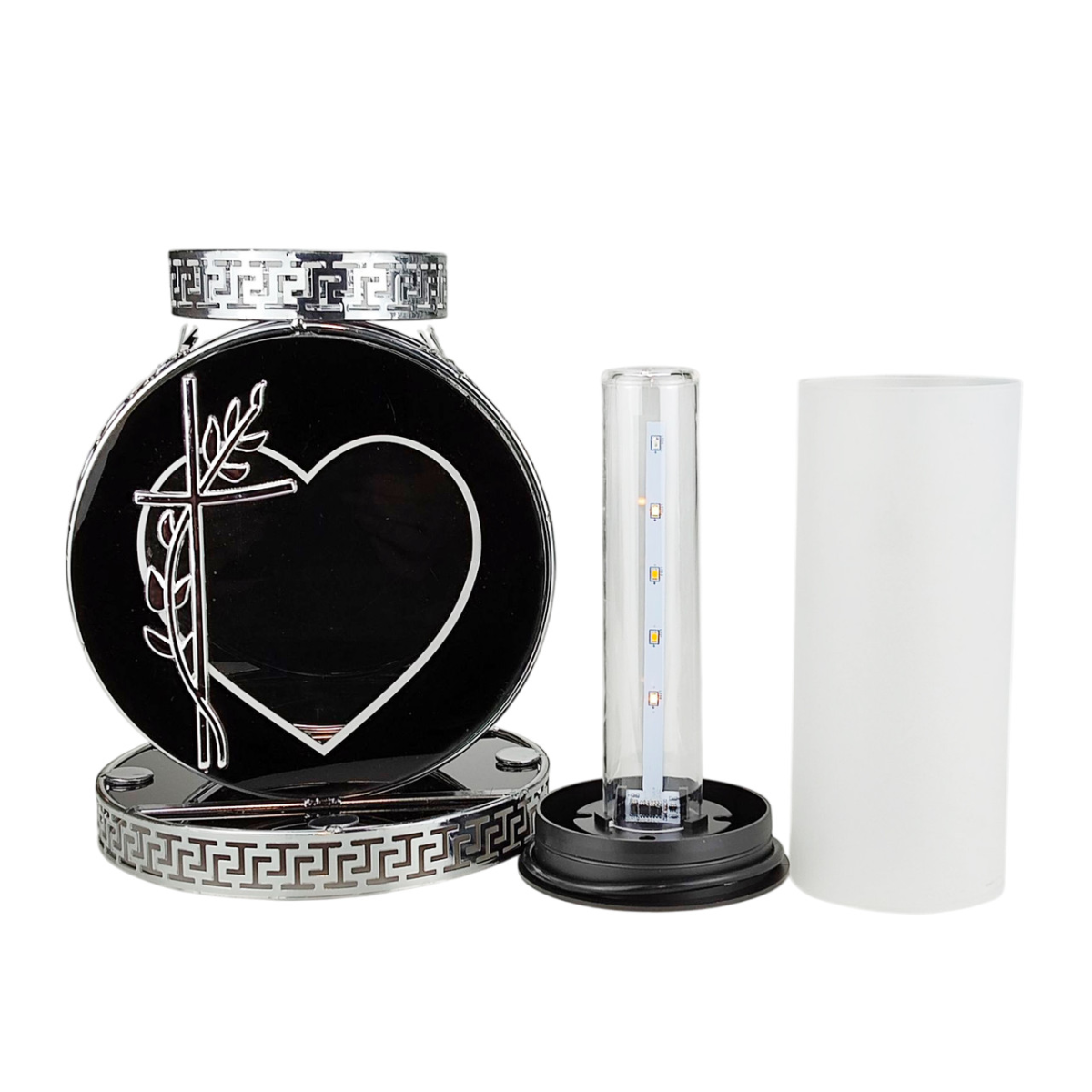 Лампадка - стриманий і символічний виріб, який запалюють на могилах померлих у пам’ять про померлих під час поминальних днів або особливих дат, що символізує незгасаючу пам’ять і молитовну підтримку душ. Матеріал: скло / пластик / нержавіюча сталь Час горіння свічки: більше 3х років Колір світла LED: теплий білий Пакування: 6 шт Висота: 25 см Ширина: 21 см Глибина: 19 см Вага: 1,1кг Сучасна вітражна лампадка на сонячній батареї. Міцний, добре підігнаний виріб, виготовлений з високоякісного скла та металу. Вітражна конструкція ручної роботи з дрібними кристалами, вплетеними в металеві люверси. Всередині знаходиться трубка з матового скла. Включається лампадка за допомогою вимикача (кнопки), розташованого у верхній частині кришки. Свічка заряджається від сонячної панелі протягом дня і світить цілодобово. Призначено для використання: цвинтар, пам“ятні заходи та меморіали простота у використанні, можливість зміни свічки без зміни лампадки стійка основа забезпечує розміщення на різних поверхнях і мінімізує можливість перекидання не містить токсичних речовин виготовлена з високоякісних матеріалів