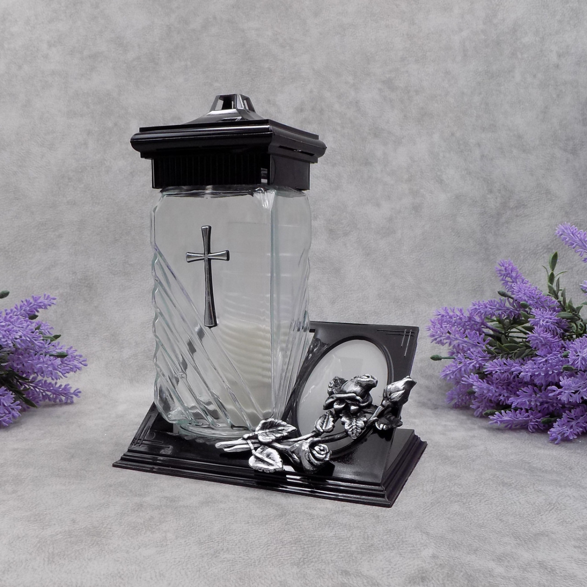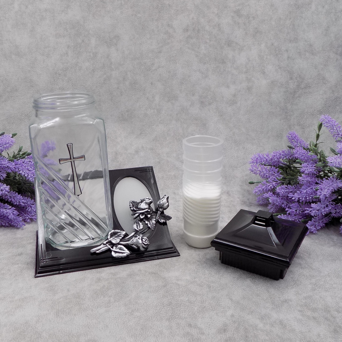 Лампадка скляна середня срібляста троянда LC222 tabliczka